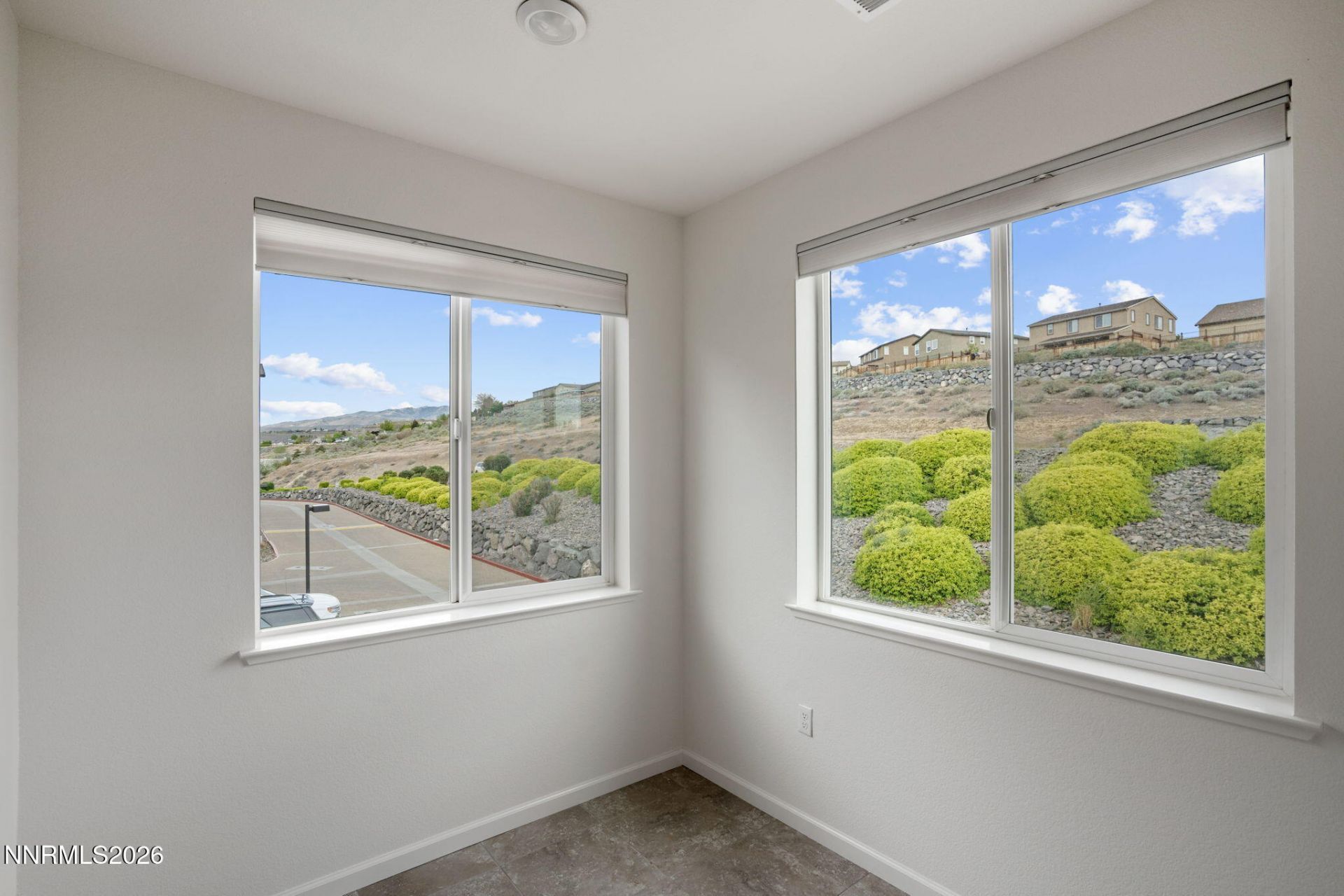 Wonderful view of Peavine Mountain! Freshly painted and new carpet throughout- This end unit townhome offers approximately 1,472 square feet of light and bright living space and features two bedrooms, two and a half bathrooms and a two car tandom garage. The main level includes an open-concept living and dining area with an abundance of natural light. The kitchen is well-equipped with stainless steel appliances, great counter space, pantry and plentiful cabinets. A half bathroom is conveniently located on this level. Upstairs, the bedrooms offer a spacious layout with a private en-suite bathroom and ample closet space. The home includes in-unit laundry room and several patios, providing additional living space. Residents will enjoy the community amenities, which include a pool, and playground. This home offers a desirable living experience in a convenient location. Public transportation, shops, and dining options are all within close proximity and you will find Wildcreek Golf Course just across the road.
